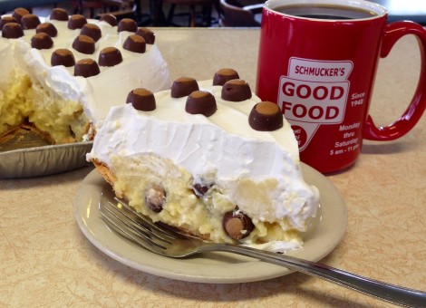 Schmucker's pies are available in over 20 varieties including Chocolate Peanut Butter, a cream pie favorite. For breakfast, lunch, dinner, and dessert, enjoy an authentic home-cooked diner experience at Schmucker's Restaurant! For dessert, try a slice of Schmucker's famous homemade pie!